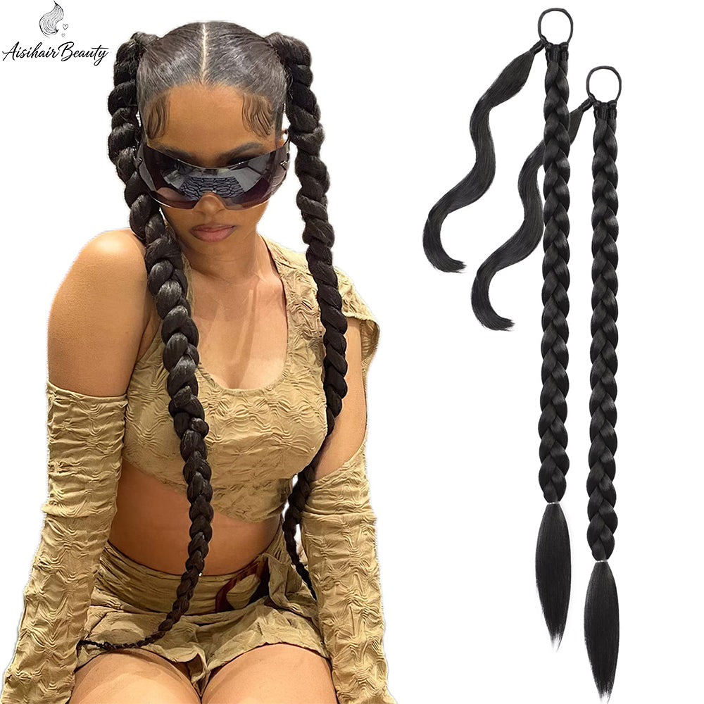 AISI HAIR BEAUTY 2PCS DIY Braid Ponytail Extension Long Straight Wrap Around Hair Extensions Ponytail Soft Synthetic Hair Natural Hairpieces for Women