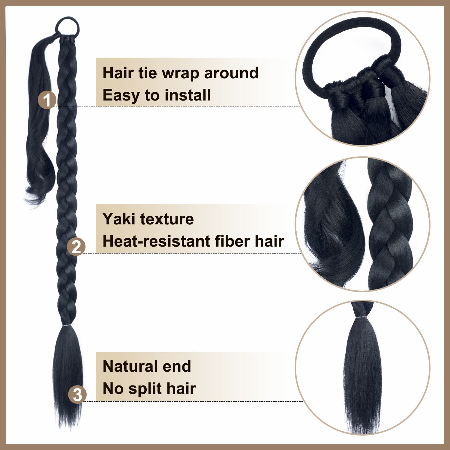 【2PCS Braided Ponytail】:Package included: 2PCS Long Braided Ponytail. Length: 32 inches, Weight: 140g/4.9oz each. The latest braided ponytail hair extensions give you a sleek look, Braids add glamour to any hairstyle, and when fused with a ponytail, you get a completely new look in an instant.